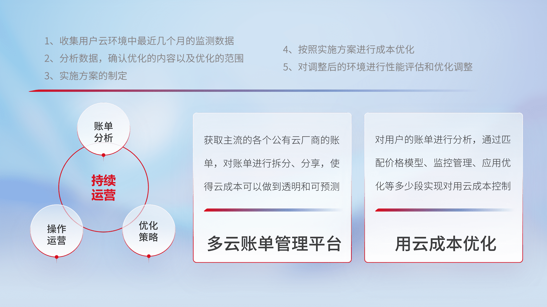 通过灵活运用多种自动化迁移工具,,,,帮助企业用户实现业务和数据高效 、、、稳定的上云迁移和云上迁移,,,,采用自研多云纳管平台,,以中立管理模式,,解决多组织、、、、多云、、、多运维厂商的复杂关系的管理,,,保证多云平台资源配置的一致性,,,实时掌控云资源运行数据,,,运用智能化工具分析云资源多云平台的管理服务,,,,透明化管理成本支出,,,,用云成本可预测、、、、用云费用可优化、、、云资源配额有据可依。。